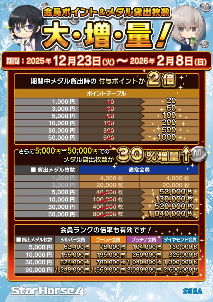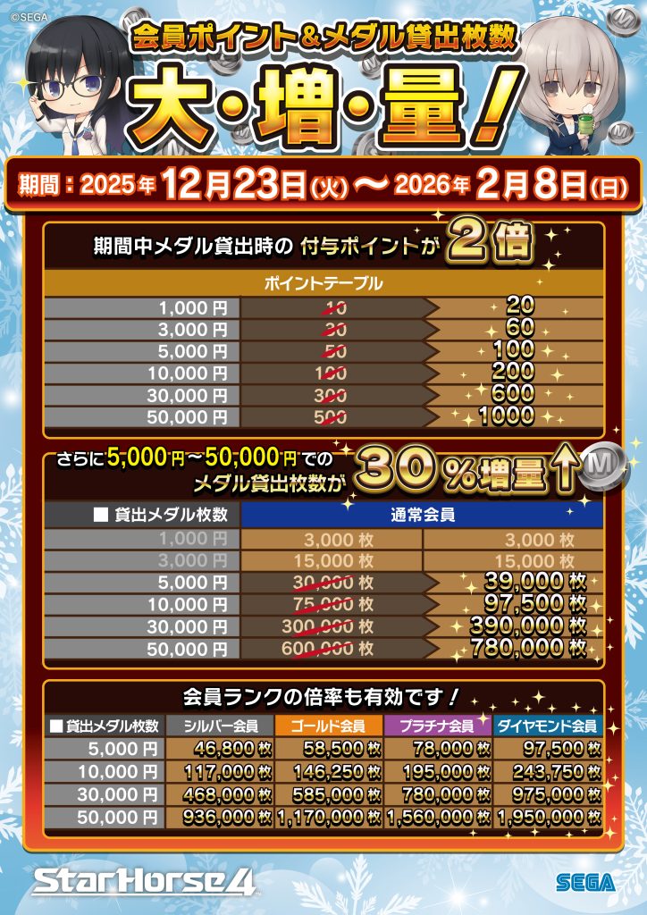 キャンペーン期間中は、メダル貸出時の会員ポイントが2倍!