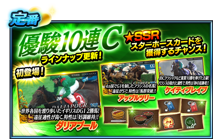StarHorse4運営チームです。 2026年1月25日(日)15:00より「優駿10連D」が開始されます! 【開催期間】 2026年1月25日(日)15:00 ~ 2026年3月24日(火)26:00まで 【目玉スタ … 続きを読む
