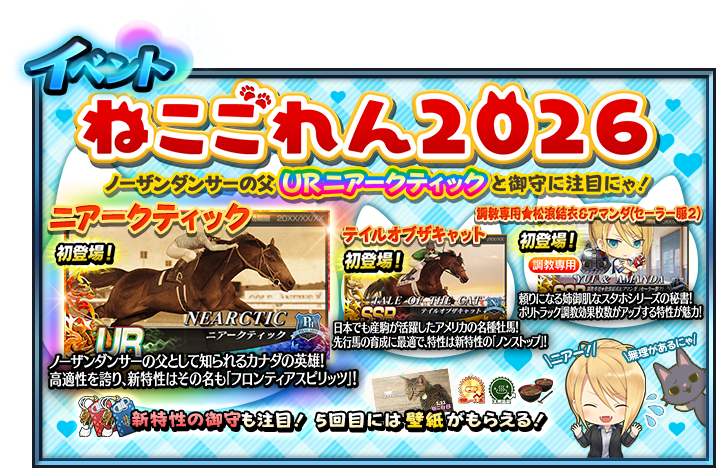 StarHorse4運営チームです。 2026年2月22日(日)15:00より、「ねこごれん2026」が開始されます! 【開催期間】 2026年2月22日(日)15:00 ~ 2026年3月23日(月)26:00まで 【 … 続きを読む