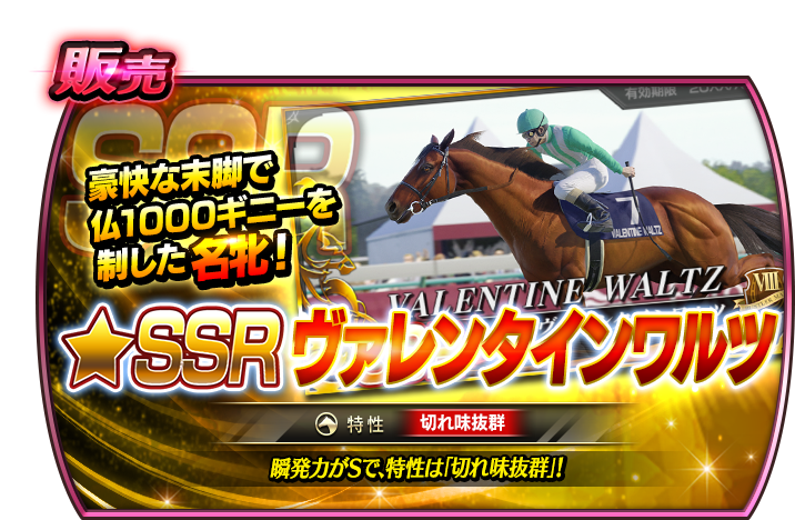 StarHorse4運営チームです。 2026年2月10日(火)15:00より、牝馬販売にヴァレンタインワルツが初登場! 【販売開始日】 2026年2月10日(火)15:00 ~ 2026年3月9日(月)26:00 【追 … 続きを読む